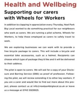 To be eligible for the scheme, applicants must be a Noel Park resident and a key worker. Along with our area coordinator, Paul Bragman, I created an application form to ensure that everyone we support through the scheme fits that particular criteria. As the project grows, I’m hoping to open out the scheme to other essential workers like supermarket staff. I would imagine that somewhere between one third and two thirds of the working population in Noel Park are either key or essential workers so I think there could be a lot of people in our Big Local area who would benefit from this.