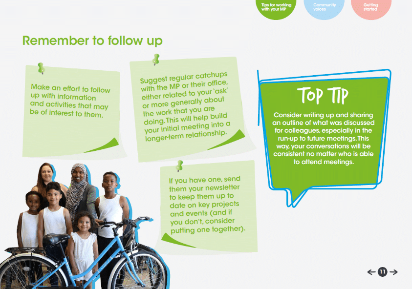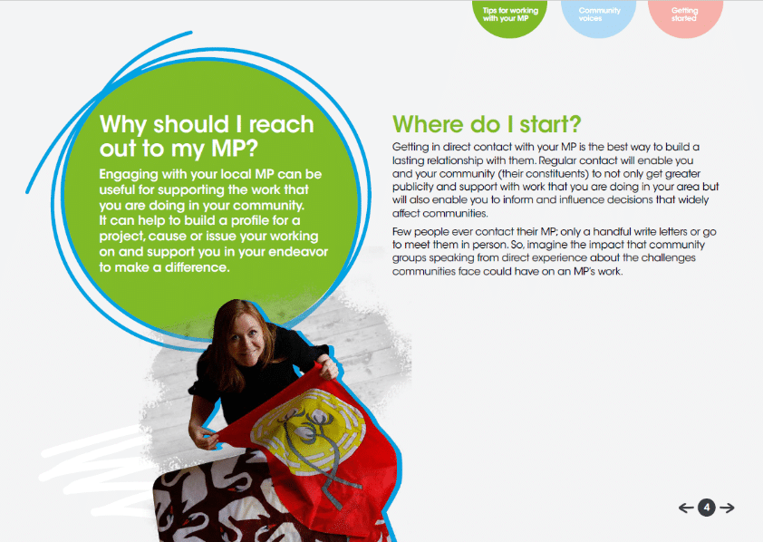 This toolkit gives an overview of some of the ways that you can engage with your local MP and provides real life examples of how different community groups have worked with theirs.