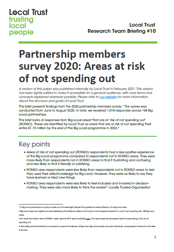 One of four research papers exploring findings from the 2020 survey of Big Local partnership members, looking at areas at risk of not spending all their funding.