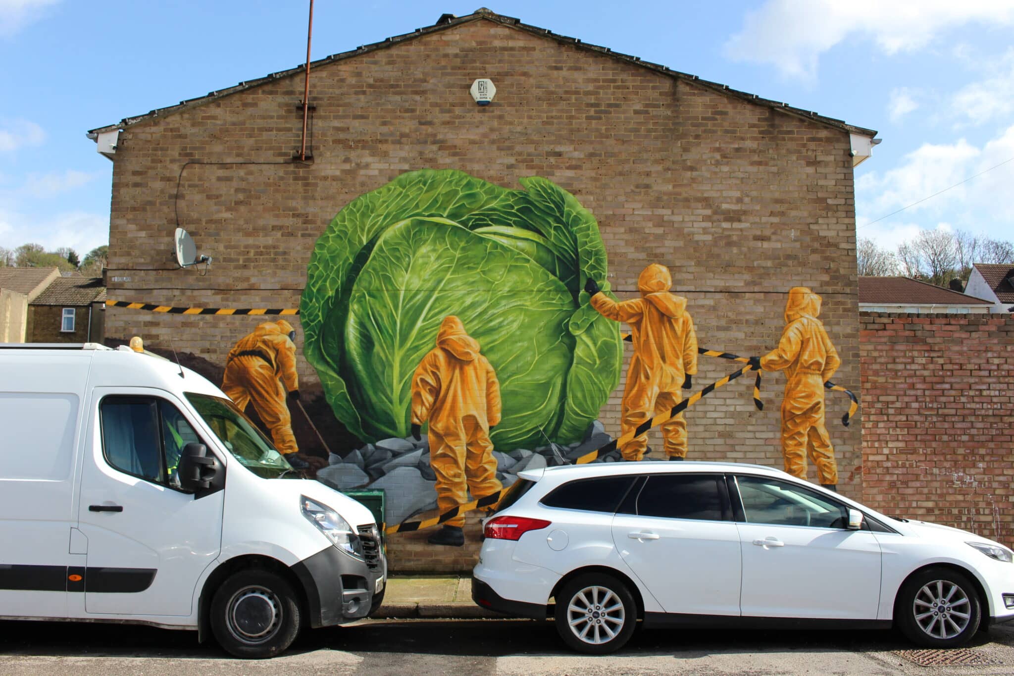 Nestled in Arches in Chatham, Kent, you’ll find a series of striking murals adorning the town – one of them being a radioactive cabbage surrounded by men in hazmat suits.